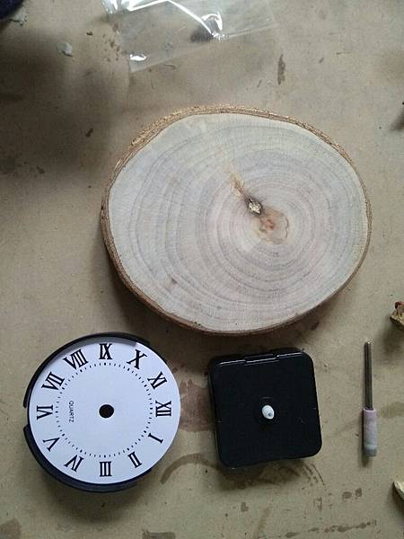 首先依照木頭形狀,先鑽鐘中心孔洞,再依照時鐘零件大小用鑽頭刻出型狀,因不是專業人士,所以都是用克難工具施做。