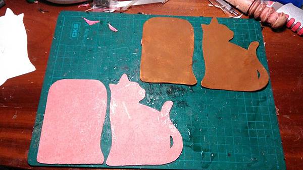 先依照紙板剪裁皮料,以深棕色約1-1.2mm皮料製作。